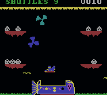 Cuthbert has been sent on a looting mission. You must collect the fuel pods & return them individually to the mother ship. Once all the pods are collected you depart for another planet but sometimes your ship malfunctions and you must go for vital spares. Good luck!