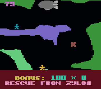 Deep in the mines of Zylon, a team of geologists are trapped. It is up to you to rescue these men in your specially adapted airship, but beware of the acid rain drops which cause you ever increasing damage.