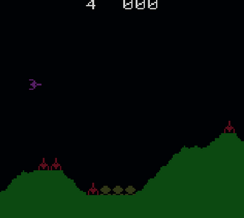 You are flying over the surface of Mars, Bomb and shoot the rockets and fuel dumps, while dodging the mountain peaks. You have 4 ships per game try to get the highest possible score. Watch out for the asteroids.