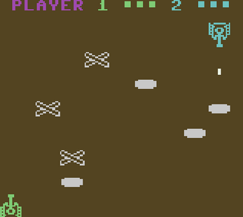 Guide your Tank along the screen, avoiding your opponents fire. Blast your way through the trenches and blow up the enemy tank before he destroys you. In two-player mode, the tank automatically moves to the right and then to the left. When the player fires the gun, the tank will start moving in the other direction. You have three tanks each per game. Good luck.